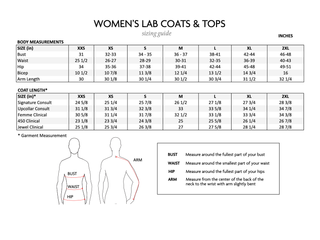 XXS: Chest 32 inches, Shoulder 15.25 inches, Waist 29.5 inches, Hip 34 inches, Armpits 33.5 inches.