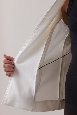 Our clinical jackets are crafted from a structured yet supple double-weave crepe that offers superior stretch, resilience, and comfort through every procedure. This jacket resists wrinkles, repels fluids, and stands up to the demands of your day—without compromising on style.